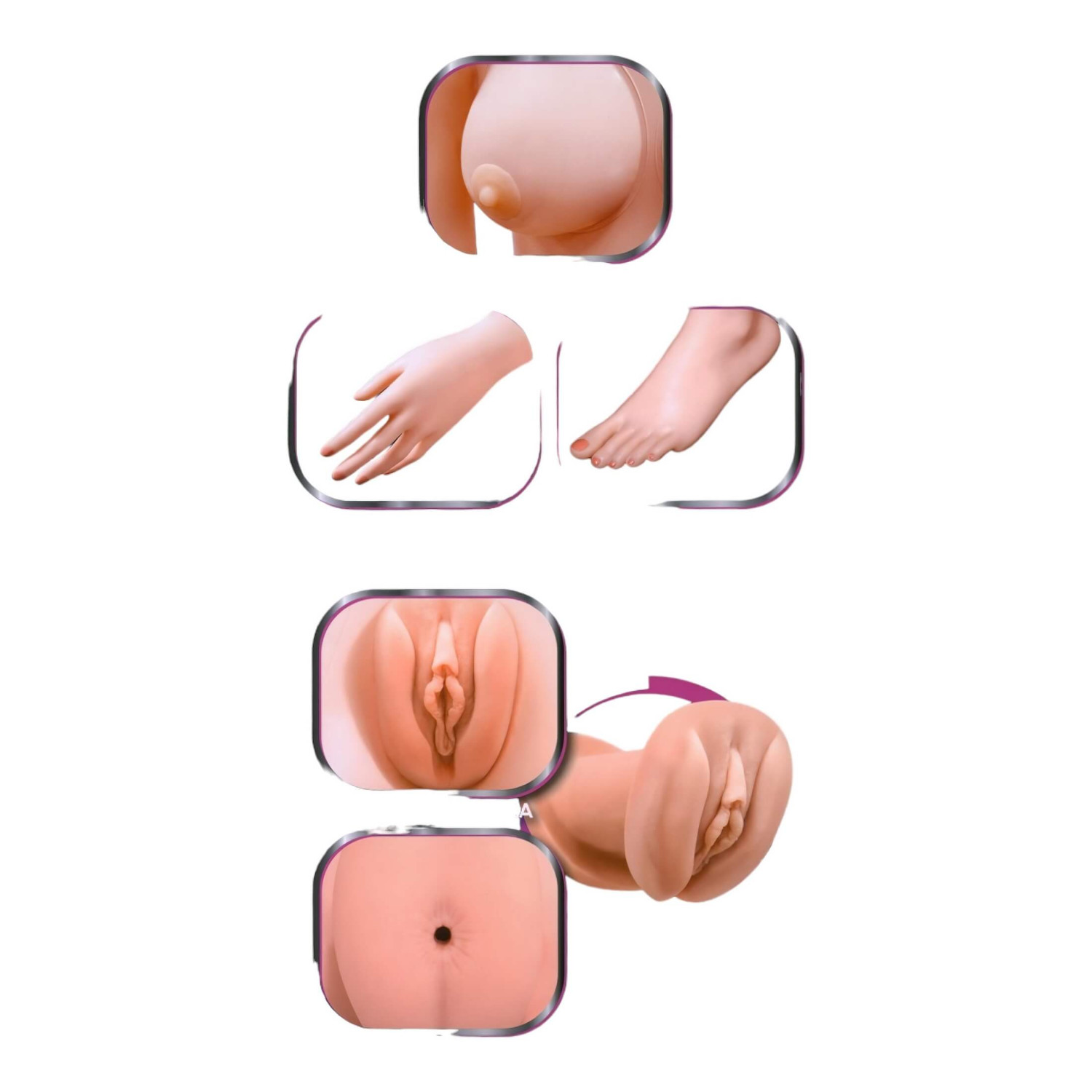 • Removable vagina and anus with a flexible, silky texture and ribbed interior