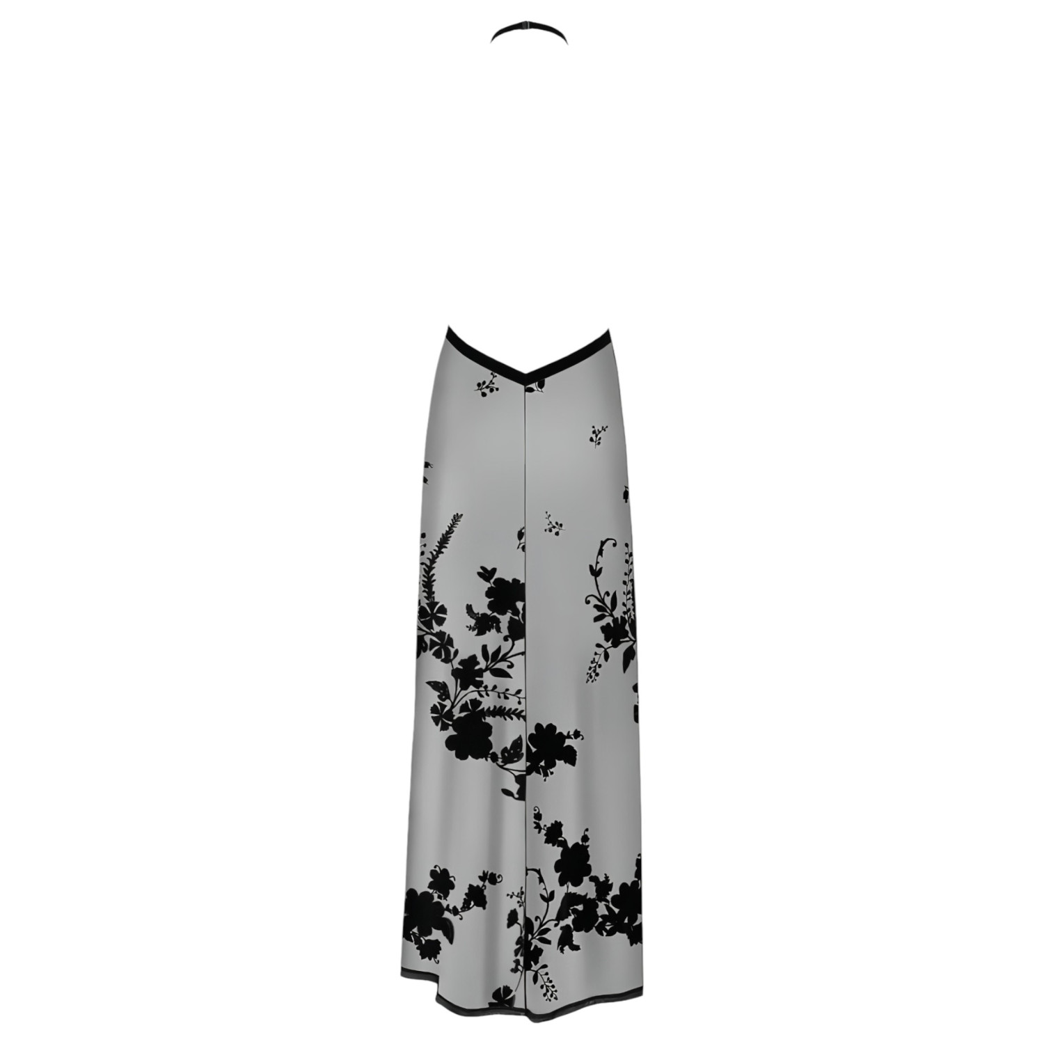 Beautiful sheer maxi dress decorated with floral patterns.