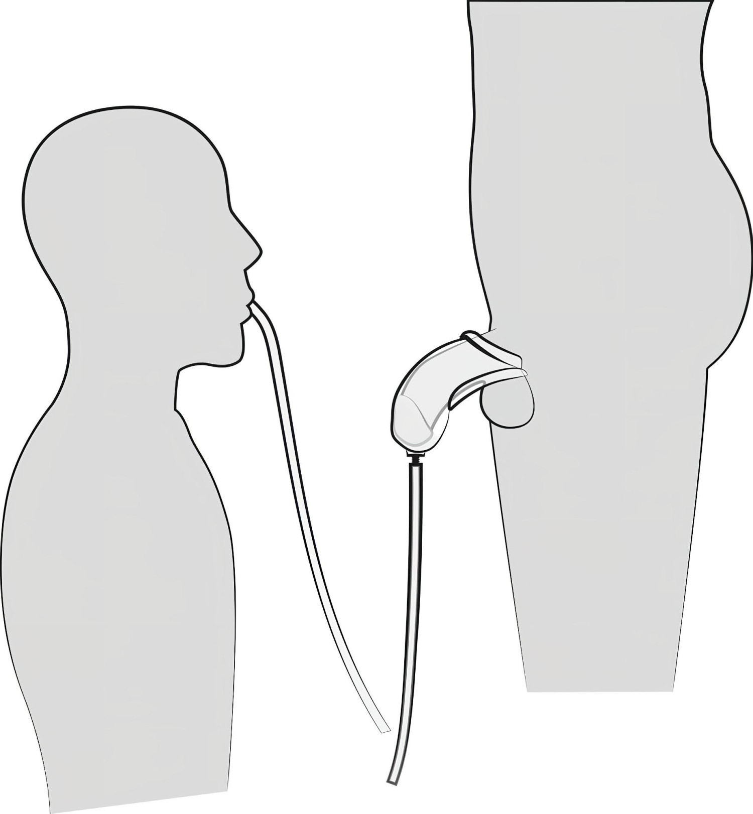 With adequate lubrication, slide the sheath onto your penis (either semi-erect or flaccid) and slip your testicles through the designated opening. Then, attach the tube to the end of the sheath.